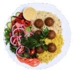 Crispy falafel patties made with chickpeas and Middle Eastern spices, served over a bed of rice with homemade garlic sauce, hummus, tahini, and hot sauce. Paired with a fresh selection of vegetables for a flavorful and satisfying meal.